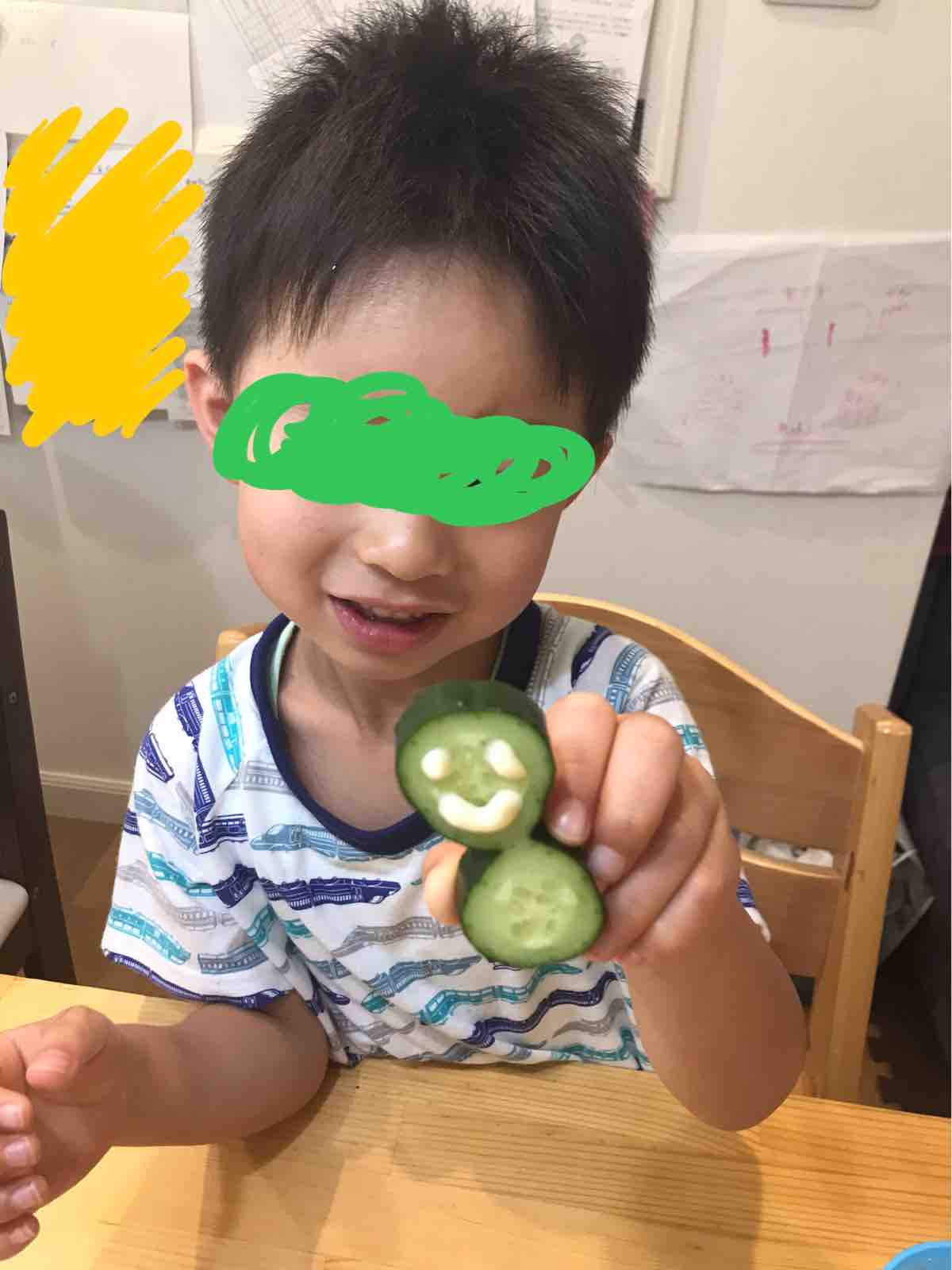 2022年06月30日 双子きゅうり こんにちはー!長男 小1 ASD次男 年中 ASD &ADHD男兄弟を育児しております、SUMIです。昨日我が家の家庭菜園で採れた双子きゅうり3分の2は薄めに切り、塩揉みして味付けして夕食用に。3分の1は厚めに切って朝ごはんにパリパリ食べます。どうやら日照不足などの環境不良でできるらしい双子きゅうりですがむしろ喜ぶよねー マヨネーズで顔を書くだけで大喜び