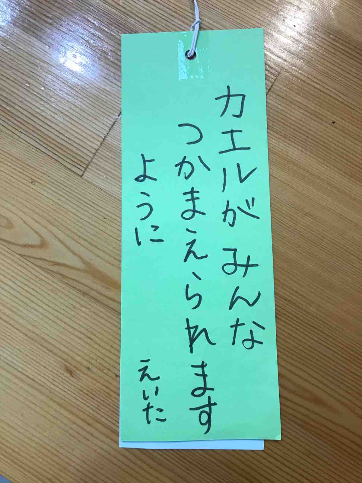 2022年06月27日 七夕の短冊 カテゴリ:diary こんにちはー!長男 小1 ASD次男 年中 ASD &ADHD男兄弟を育児しております、SUMIです。次男が保育園に飾るという短冊を持って帰ってきました!一枚は次男の願いを、一枚は親の願いを書きます!次男の短冊は…安定のカエル。カエルになりたいお年頃。次男と一緒にペンを握って書きました